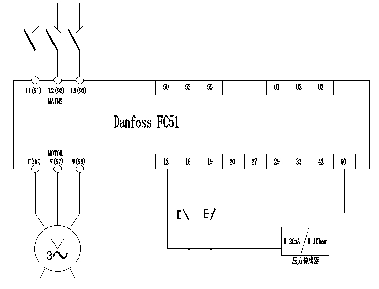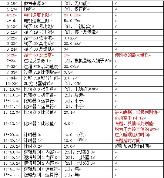 在水泵應(yīng)用中,我們經(jīng)常會(huì)接觸到恒壓控制系統(tǒng)。丹佛斯FC51變頻器自帶PI調(diào)節(jié)功能,能實(shí)現(xiàn)恒壓供水控制。但是恒壓供水系統(tǒng)中還有很多其他功能,例如:休眠功能,我們就可以使用FC51自帶的SLC功能來實(shí)現(xiàn)。