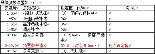 通過以上設(shè)置,當(dāng)恒壓系統(tǒng)中泵的轉(zhuǎn)速低于20.1 Hz時(shí),延時(shí)10秒,啟動(dòng)休眠模式,變頻器停止輸出;在泵處在休眠狀態(tài)時(shí),當(dāng)恒壓供水系統(tǒng)的壓力反饋值低于4 bar時(shí),延時(shí)10秒,啟動(dòng)變頻器,這樣就實(shí)現(xiàn)了恒壓供水系統(tǒng)的休眠功能。