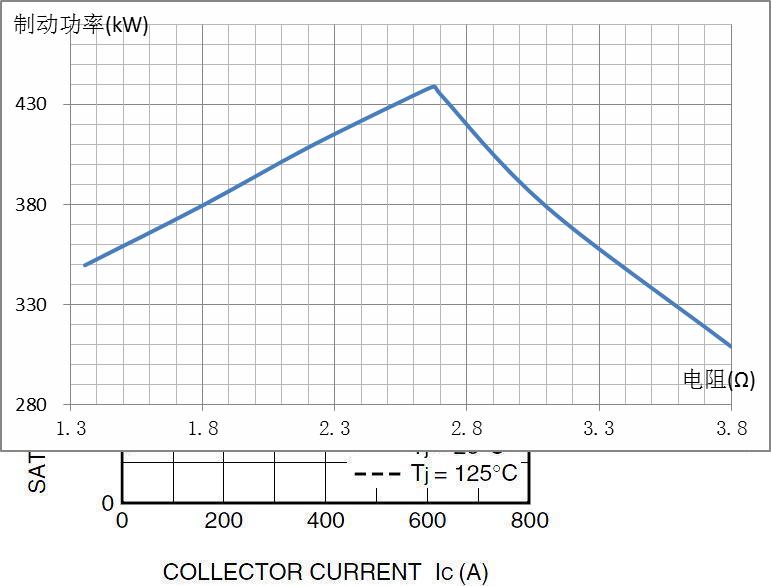 查到三菱CM400DY-34A和英飛凌FZ400R17KE3的晶體管特性與其完全相同,因此可以使用他們的“VCE-IC”特性曲線,獲得制動晶體管的導通壓降。