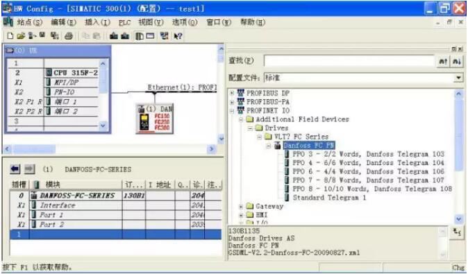 安裝成功后,可以在硬件目錄”PROFINET IO” — “Additional Field Devices” — “Drives” 欄下找到 Danfoss FC 系列變頻器,如右圖所示。