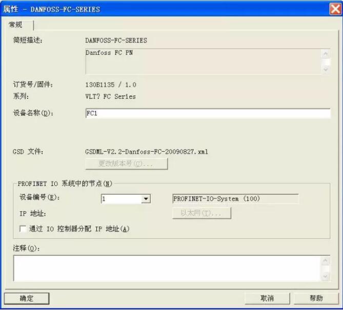 丹佛斯 FC300 系列變頻器 ProfiNet GSD 文件名為“GSDML-V2.2-Danfoss-FC-20090827. xml”(可從丹佛斯官網(wǎng)下載)。