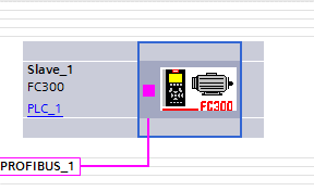 將變頻器 FC300 拖動(dòng)到 PROFIBUS_1 連接線處后,PLC 和變頻器連接在一起,F(xiàn)C300 顯 示為未分配。