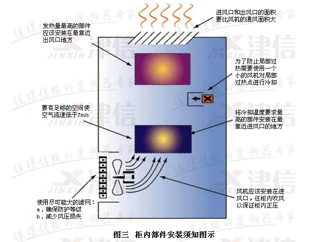 8) 確保柜體的散熱量大于變頻器的發(fā)熱量;