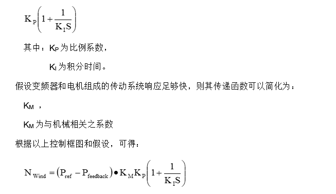 為適當簡化方程,假設只用PI調節,忽略微分,則PID調節器的傳遞函數為: