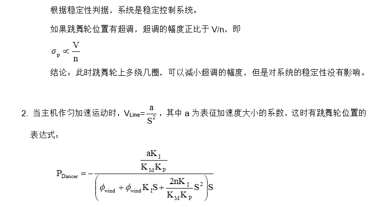 上面的方程表明跳舞輪位置反饋控制等效于以鋼簾線的線速度為輸入變量的二階控制系統。下面就主機工作于勻速和勻加速(減速)兩種不同的工況分別分析跳舞輪位置控制的控制特性。