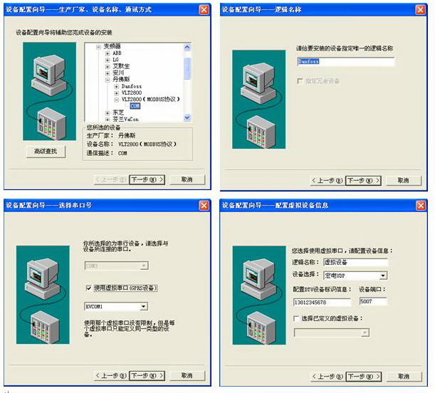 Danfoss變頻器的用戶群日益擴(kuò)大,所涉及的行業(yè)領(lǐng)域也日趨廣泛,同時近幾年基于手機(jī)無線通信網(wǎng)絡(luò)的GPRS數(shù)據(jù)傳輸技術(shù)也應(yīng)用更加廣泛。Danfoss變頻器應(yīng)用在一些非工廠的獨(dú)立設(shè)備上,類似于建筑工地塔吊和油田抽油機(jī)等,設(shè)備所有者或者監(jiān)控中心需要實(shí)時或是需要的時候了解設(shè)備當(dāng)前運(yùn)行狀態(tài),硬布線的方案不可行。所以本文將講述基于GPRS的對Danfoss變頻器的遠(yuǎn)程監(jiān)控。用戶需要為計算機(jī)申請公網(wǎng)IP地址或域名及現(xiàn)場設(shè)備上連接支持GPRS服務(wù)的DTU模塊。