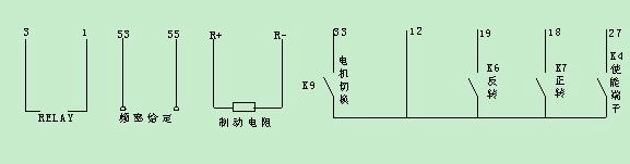 K6和K7分別控制電機正反轉,K4為使能端;頻率給定方式是PLC輸出0--+10V的電壓信號對應0—50HZ;并且KEB也是利用變頻器自身的+15V源極開機方式.以上條件丹佛斯VLT2800全部可以滿足并且能夠達到客戶所有要求的功能.
