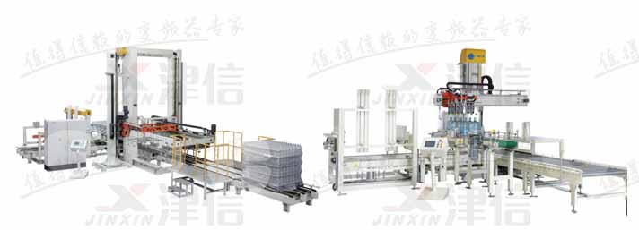 本項(xiàng)目設(shè)備名稱為碼垛機(jī)和卸垛機(jī),碼垛機(jī)是將已裝入容器的紙箱,按一定排列碼放在托盤、棧板(木質(zhì)、塑膠)上,進(jìn)行自動(dòng)堆碼,可堆碼多層,然后推出,卸垛機(jī)的工作原理基本和碼垛機(jī)一樣,只不過工序不一樣;丹佛斯變頻器在本項(xiàng)目中主要負(fù)責(zé)所有電機(jī)的控制,包括輸送線控制、定位控制等。